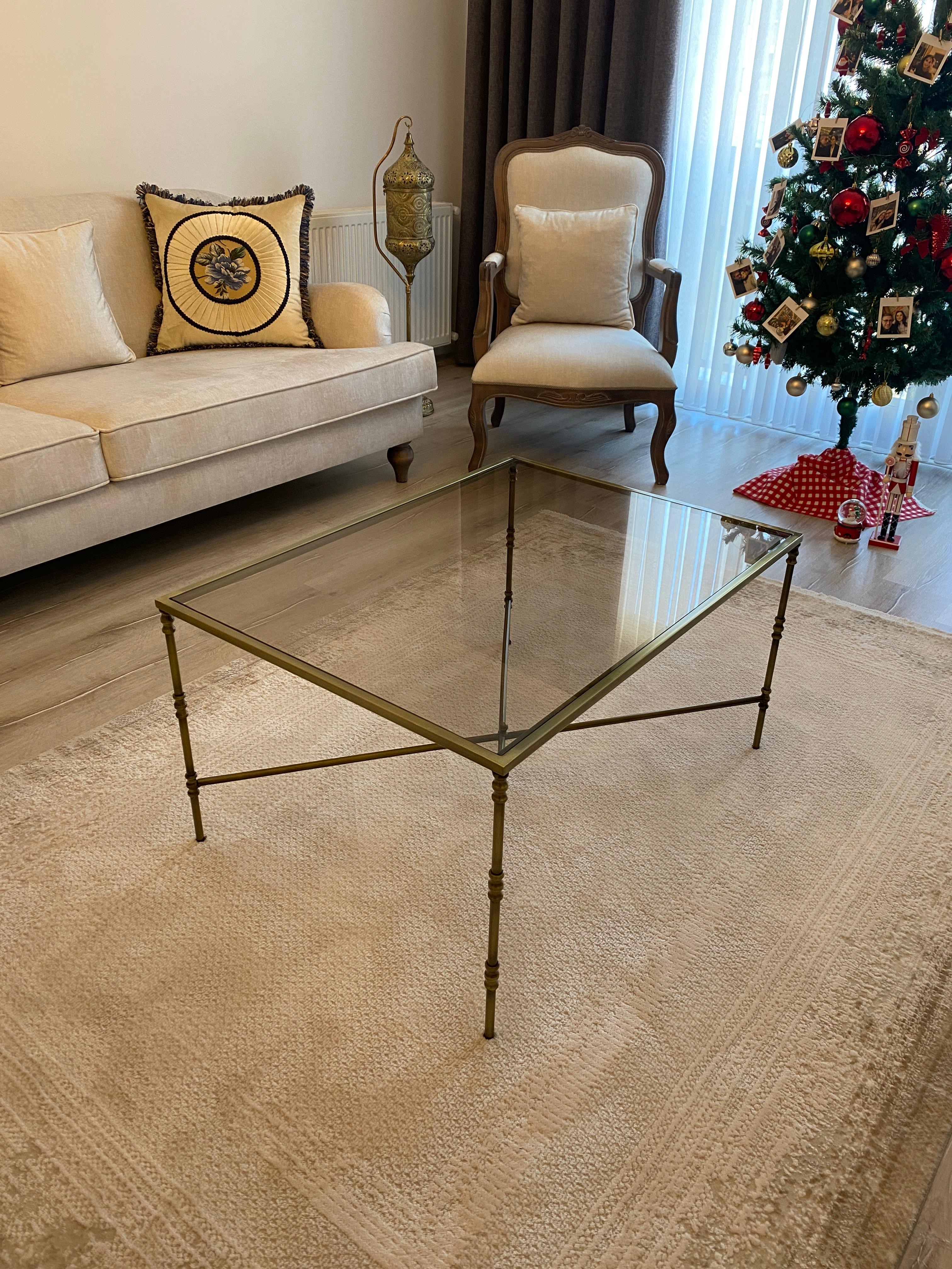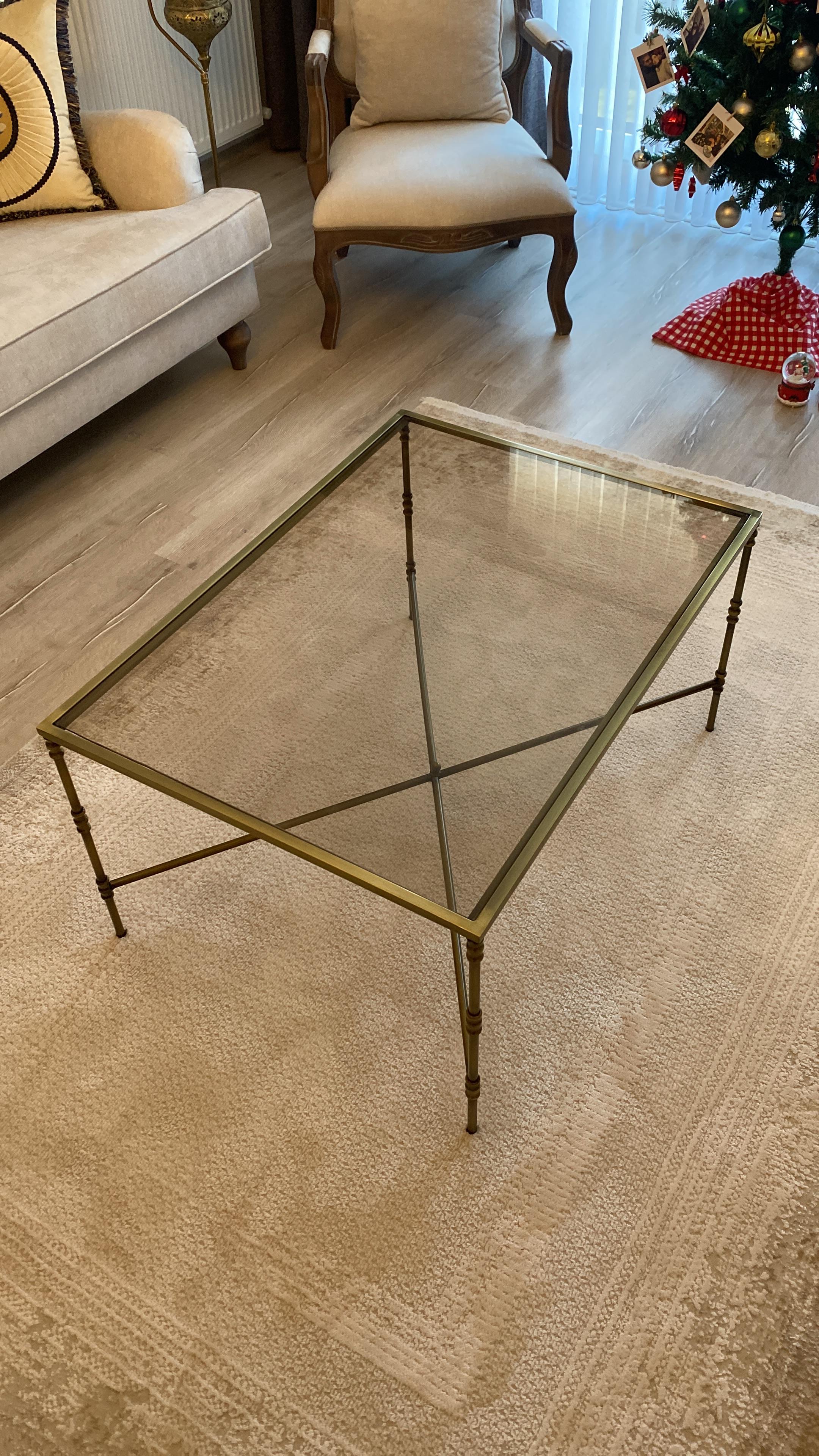 ESKİTME KAPLAMA DİKDÖRTGEN TORNALI ORTA SEHPA BRONZ CAM