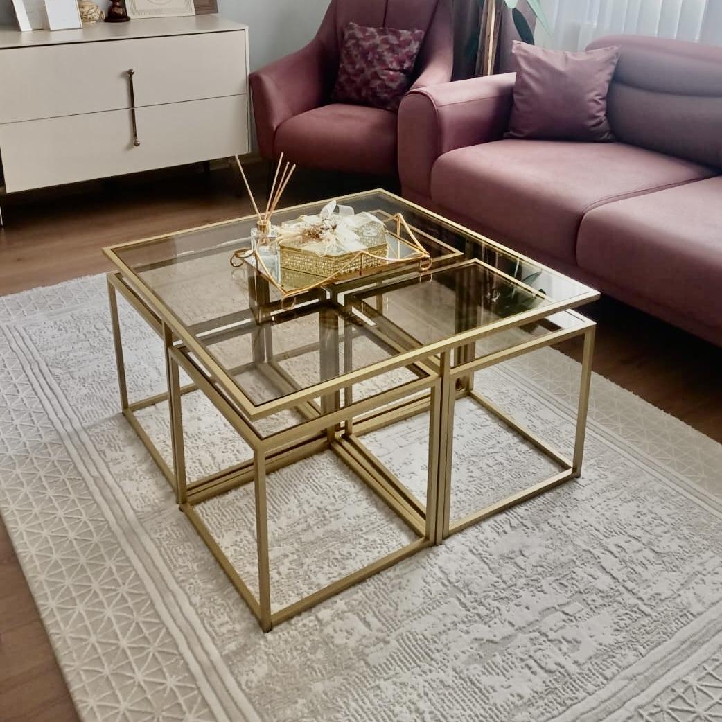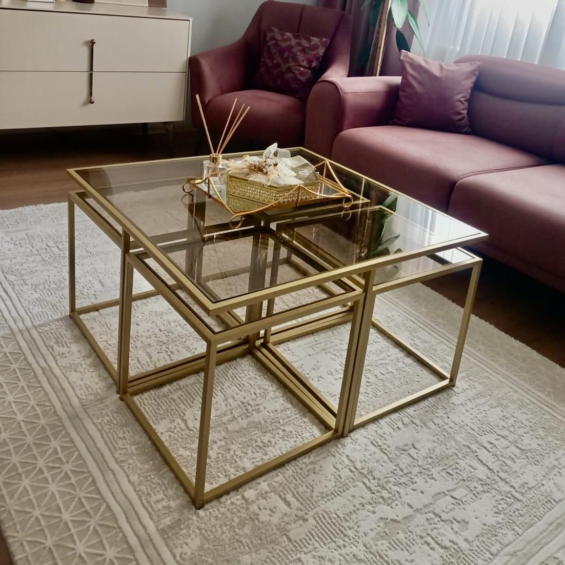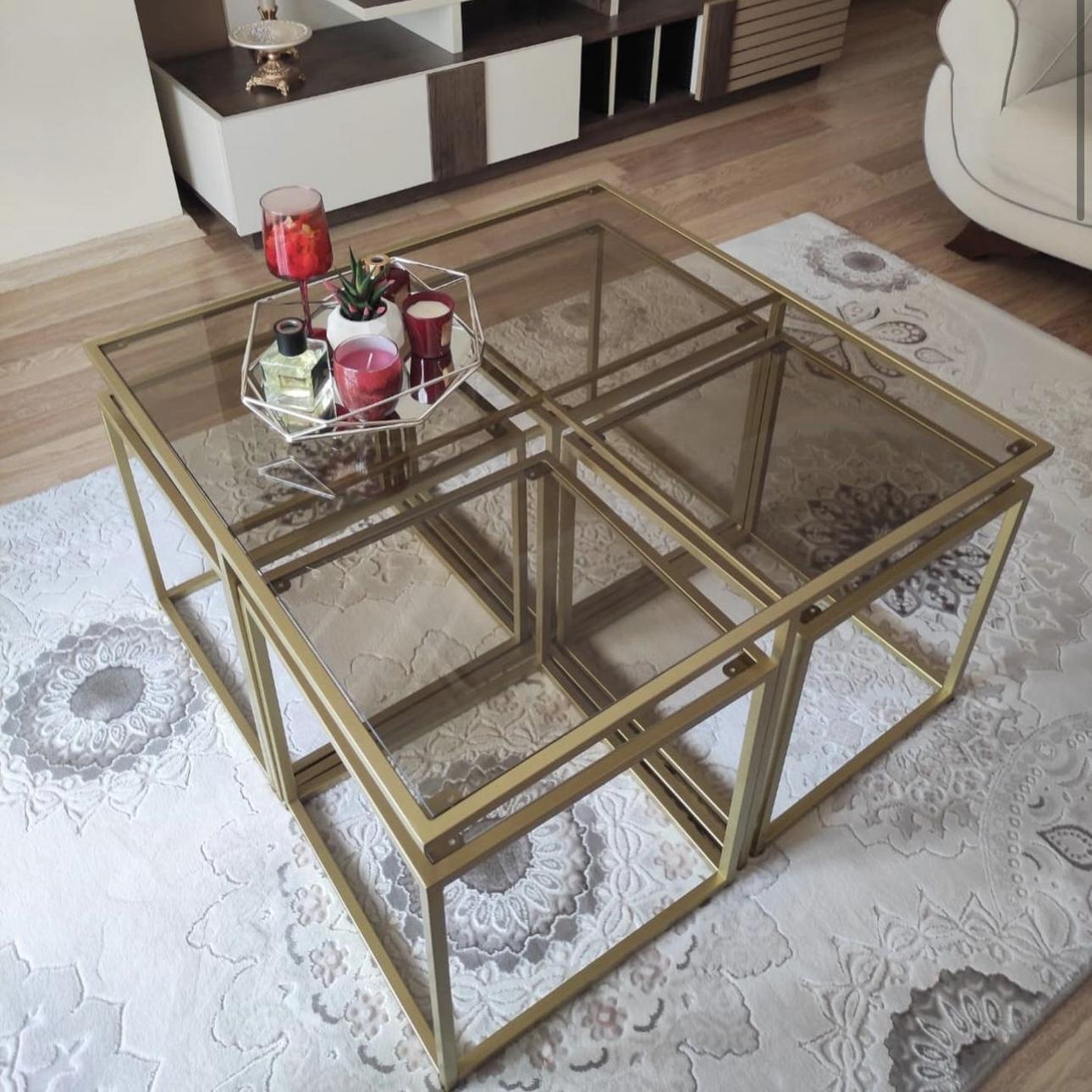 MAT GOLD KARE 4+1 PİZZA ORTA SEHPA KOMPLE BRONZ CAM