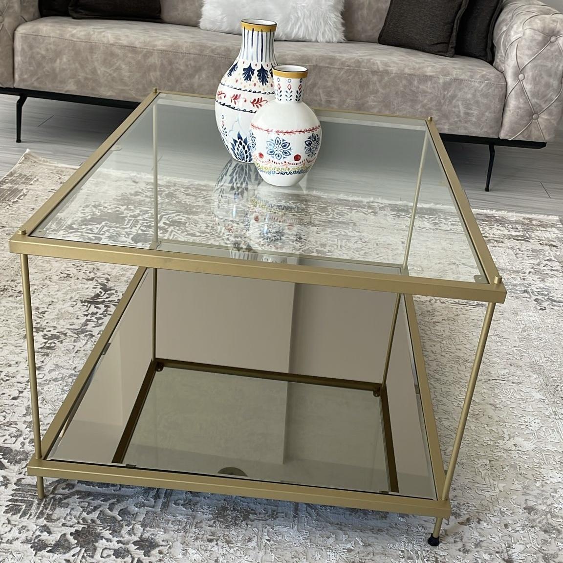MAT GOLD MİL ORTA SEHPA ÜST ŞEFAF CAM ALT BRONZ AYNA
