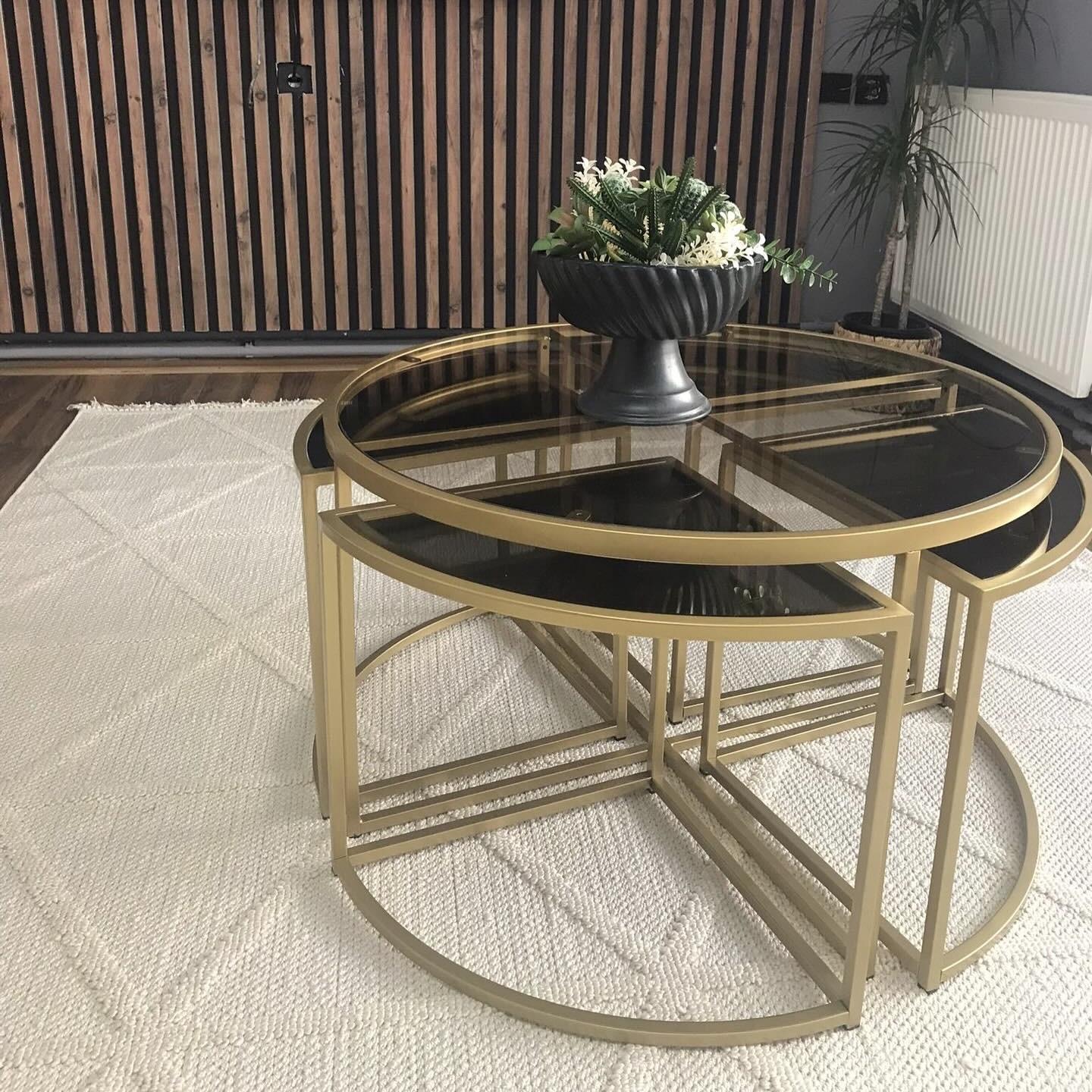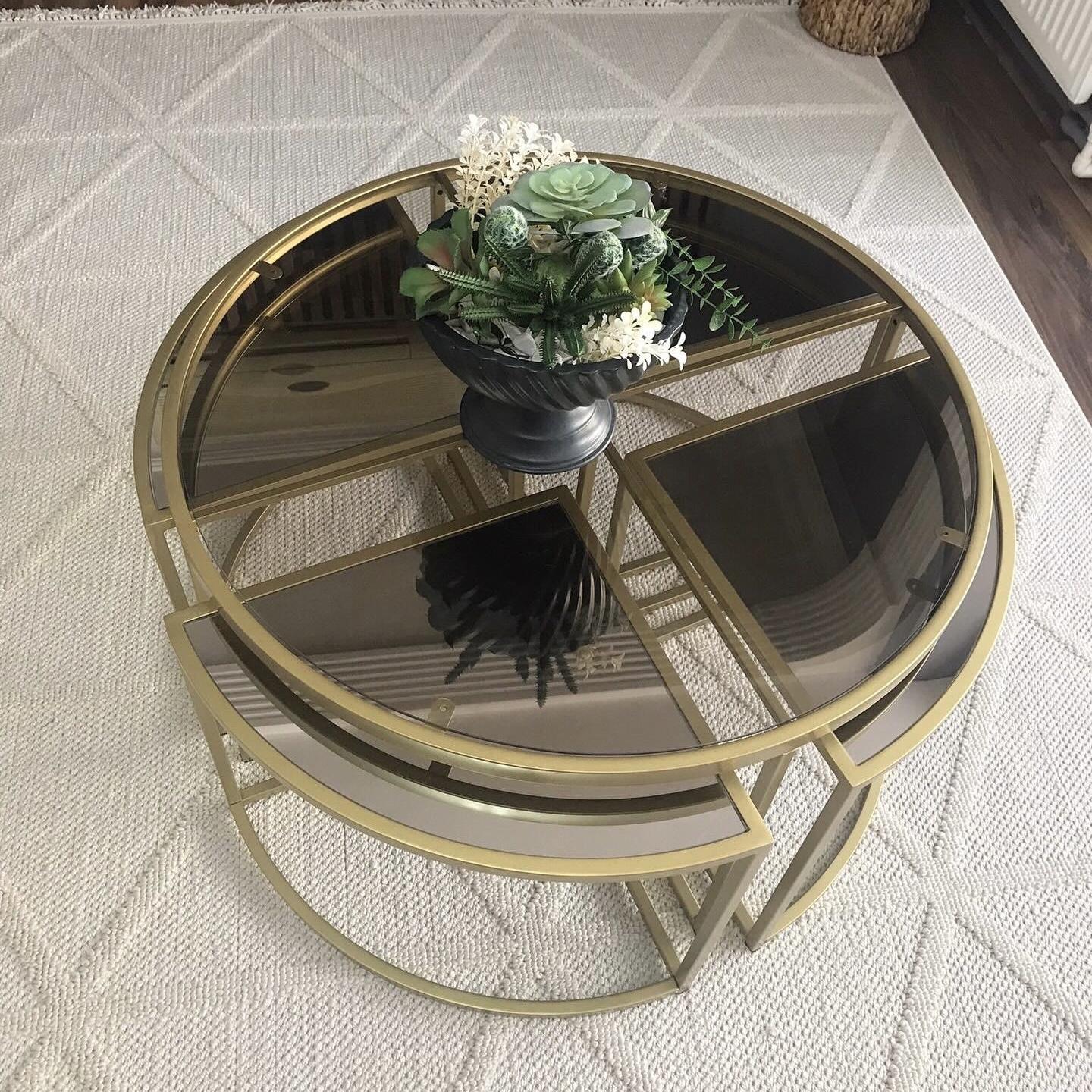 MAT GOLD YUVARLAK 4+1 PİZZA ORTA SEHPA ÜST BRONZ CAM ALT BRONZ AYNA