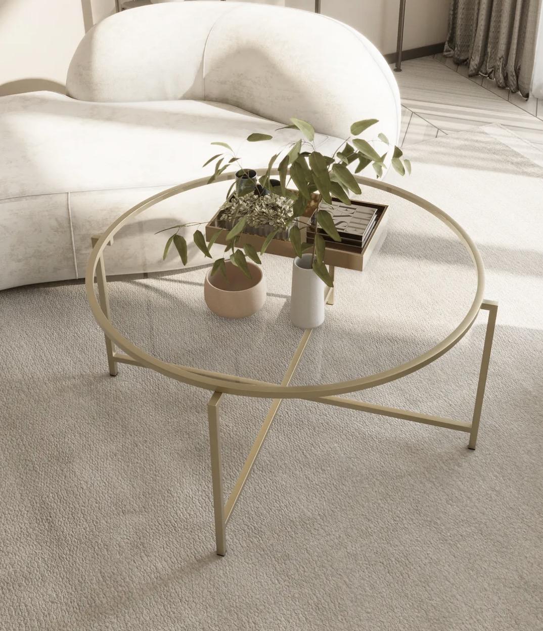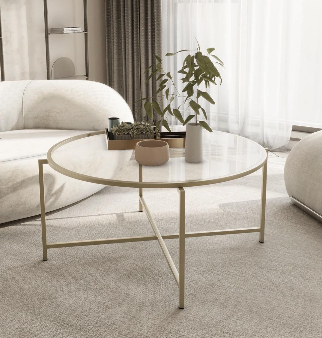 MAT GOLD YUVARLAK ORTA SEHPA ŞEFFAF CAM