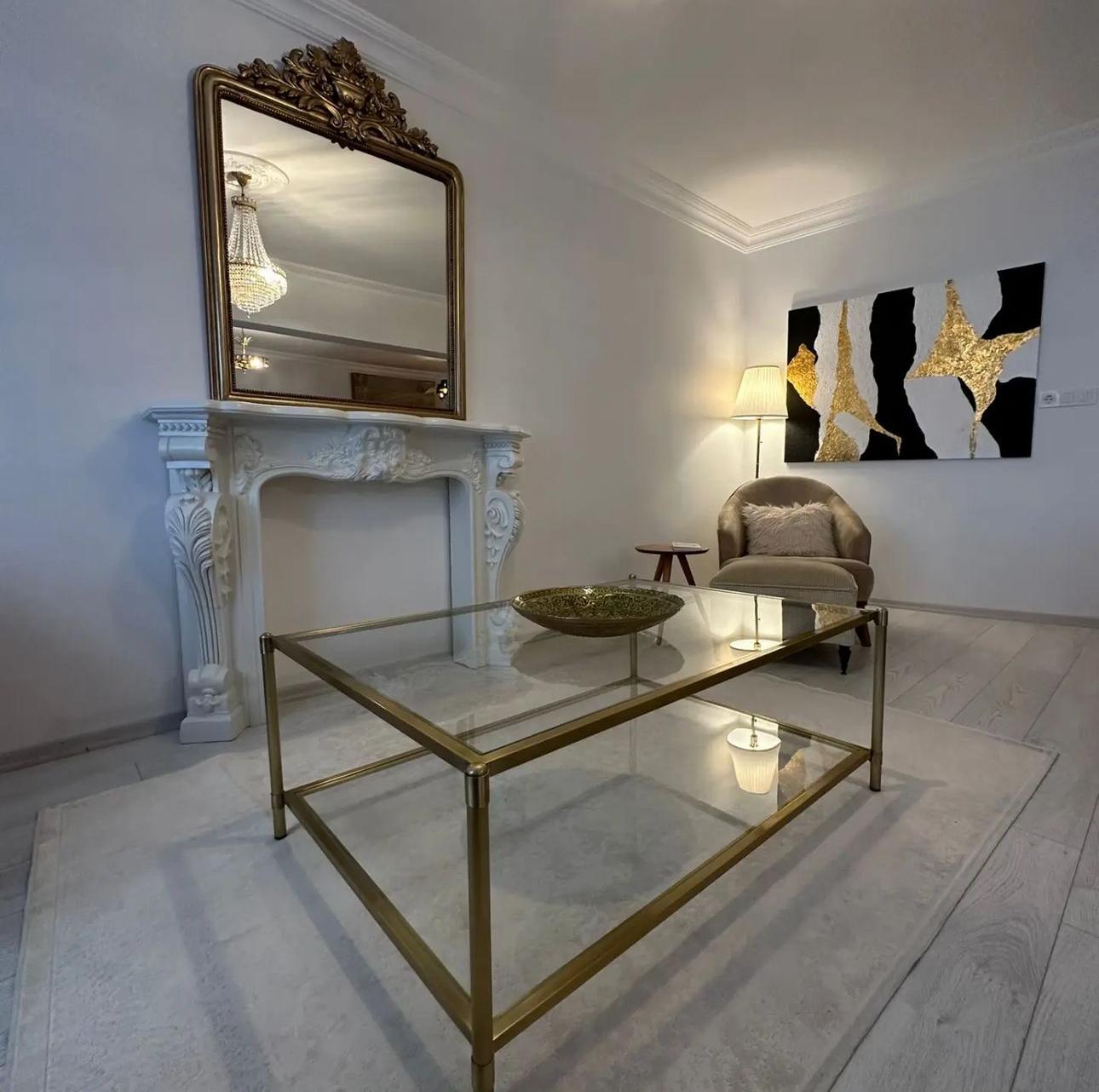 PARLAK GOLD BLOK DİKDÖRTGEN ORTA SEHPA ŞEFAF CAM