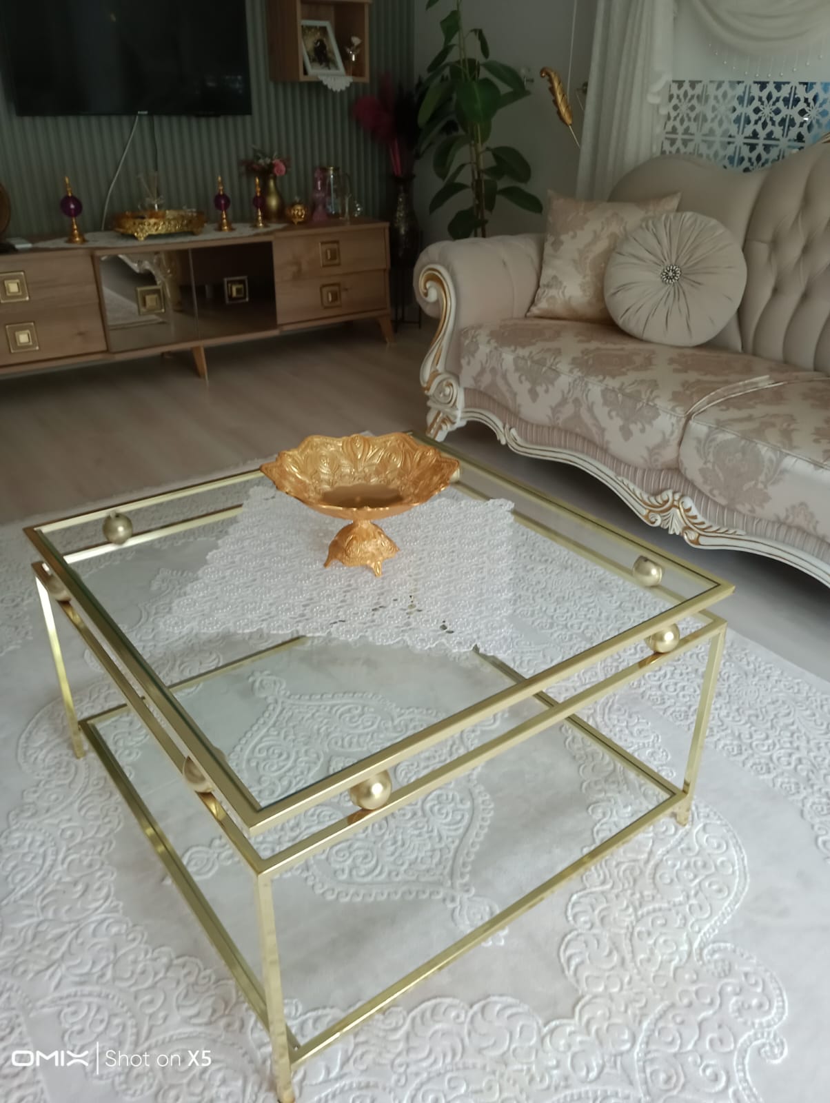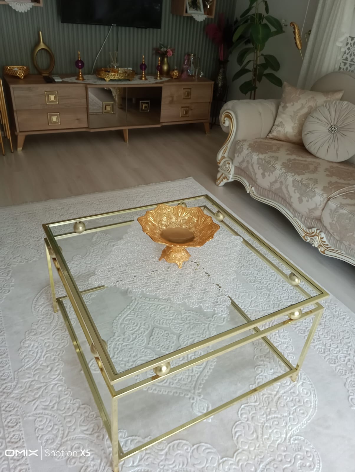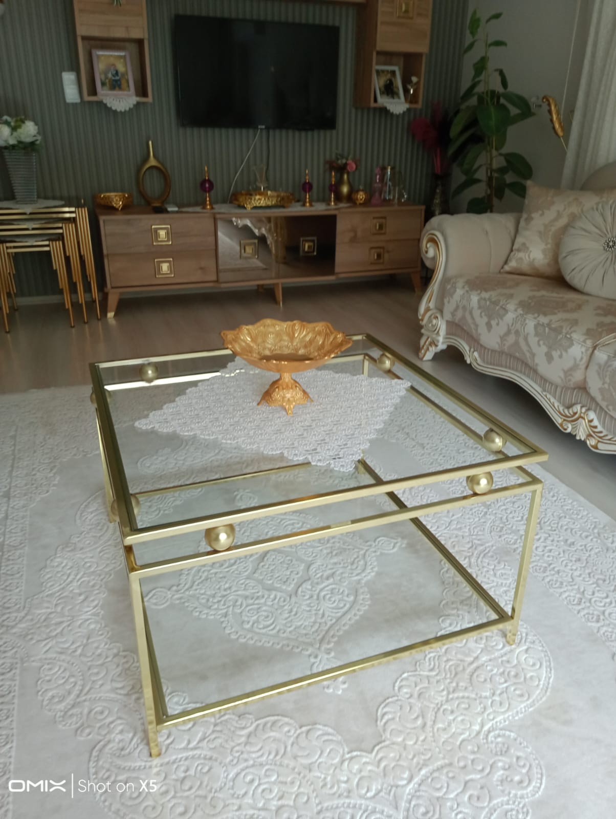 PARLAK GOLD KÜRE ORTA SEHPA ŞEFFAF CAM