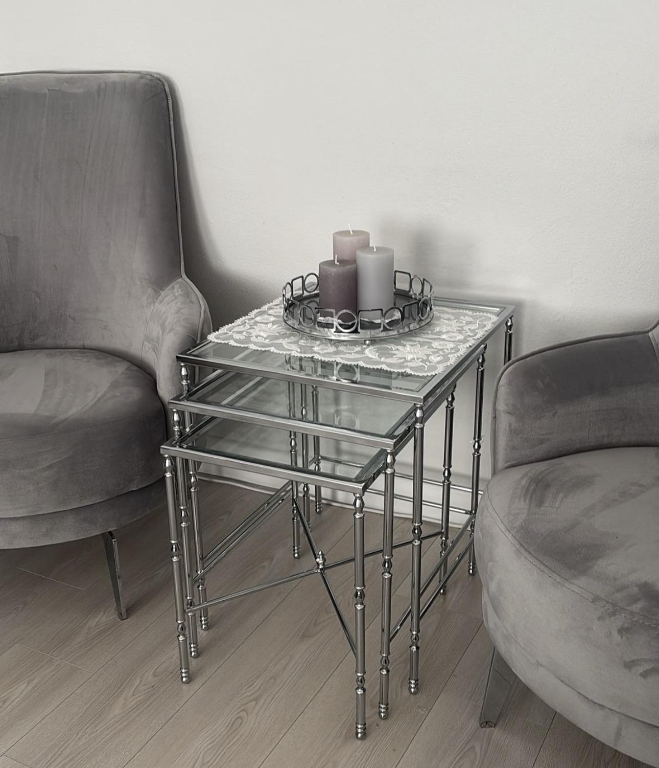 PARLAK KROM TORNALI ORTA SEHPA VE ZİGON ŞEFFAF CAM