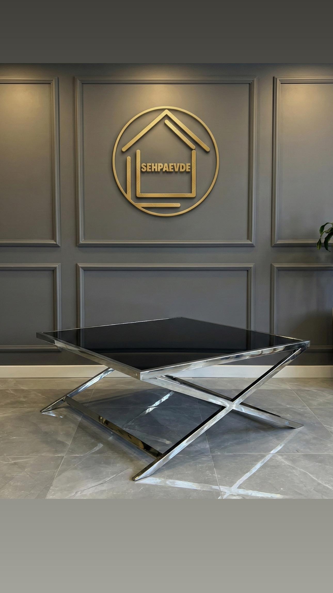 PARLAK KROM X KARE ORTA SEHPA SİYAH AYNA
