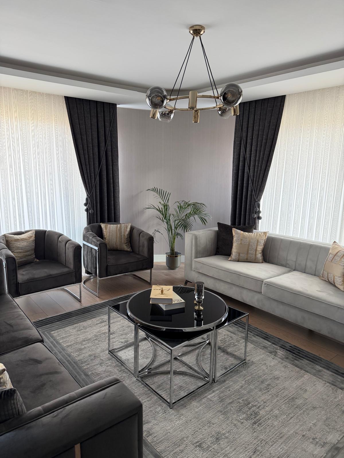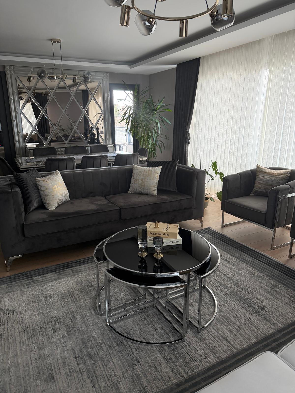 Bu orta sehpa, yalnızca dekoratif bir öğe değil, aynı zamanda işlevsel bir mobilyadır. Ortada yer alan geniş yüzeyi, yemek servisinden, kahve sohbetlerine kadar birçok farklı aktivite için idealdir. Üzerinde kitap, dergi ya da dekoratif objeler sergileyerek oturma alanınıza kişisel bir dokunuş katabilirsiniz. 4+1 tasarımı ile kalabalık misafir gruplarınıza rahatlıkla hizmet edebilir.