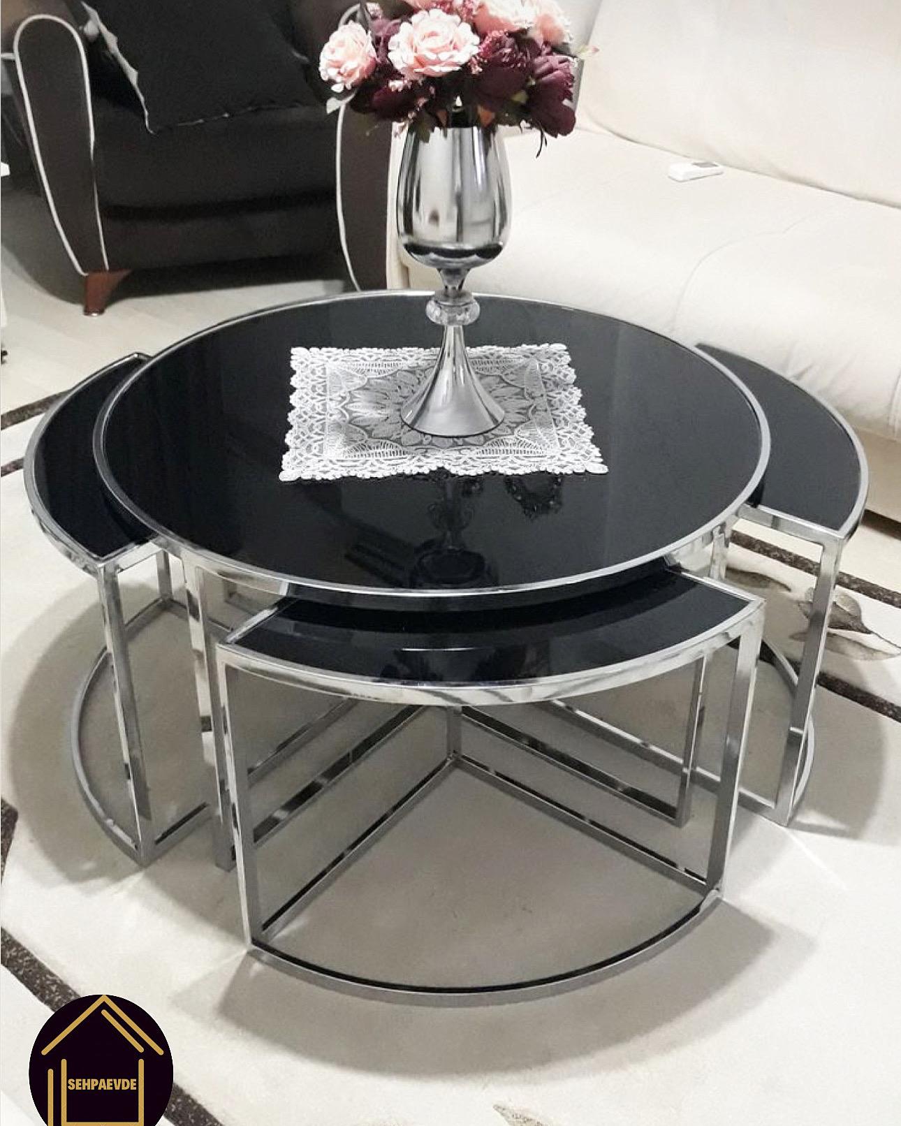 Parlak Krom Yuvarlak 4+1 Pizza Orta Sehpa Komple Siyah Ayna, estetik görünümü, kaliteli malzemesi ve fonksiyonelliği ile dikkat çeken bir üründür. Özellikle modern yaşam alanlarınıza zarafet katmak istiyorsanız, bu sehpa tam da aradığınız parça. Evinizi ya da ofisinizi hem şık hem de kullanışlı bir hale getirmek için bu sehpayı tercih edebilirsiniz.