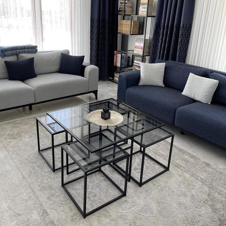 SİYAH KARE 4+1 PİZZA ORTA SEHPA KOMPLE FÜME CAM