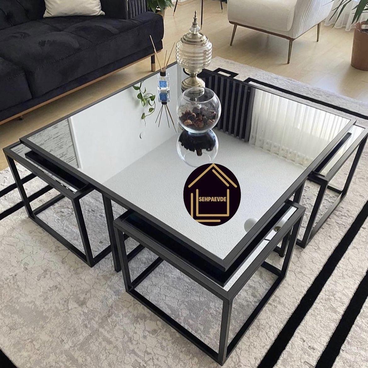 SİYAH KARE 4+1 PİZZA ORTA SEHPA KOMPLE KLASİK AYNA