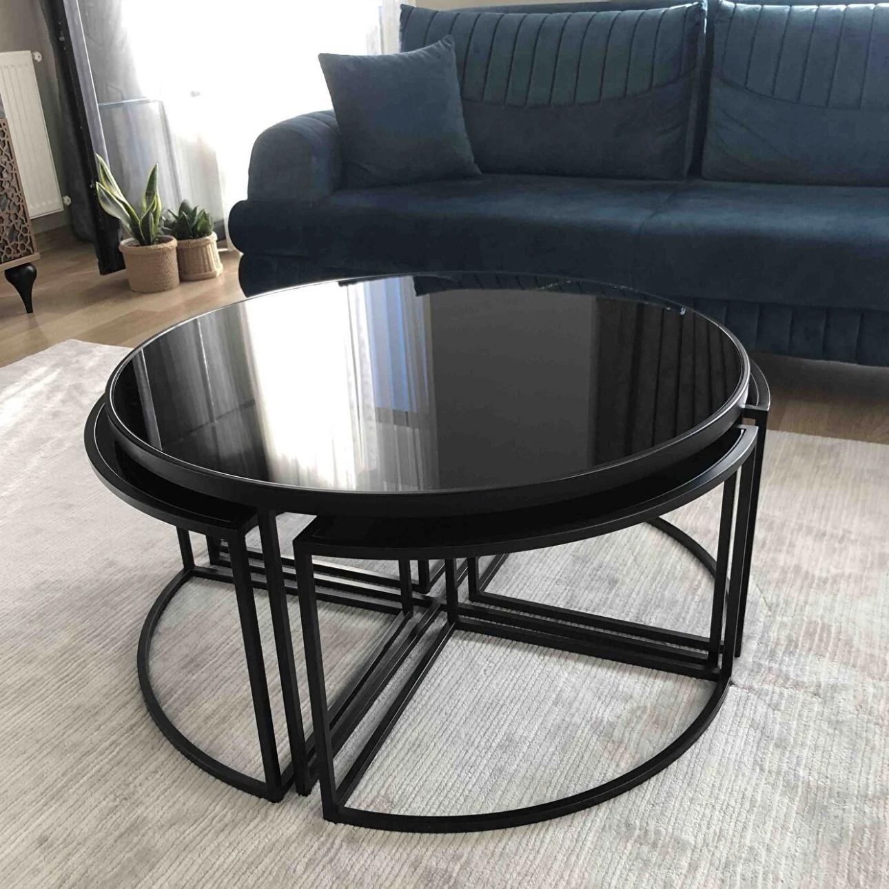SİYAH YUVARLAK 4+1 PİZZA ORTA SEHPA SİYAH AYNA